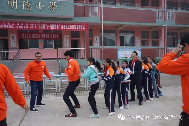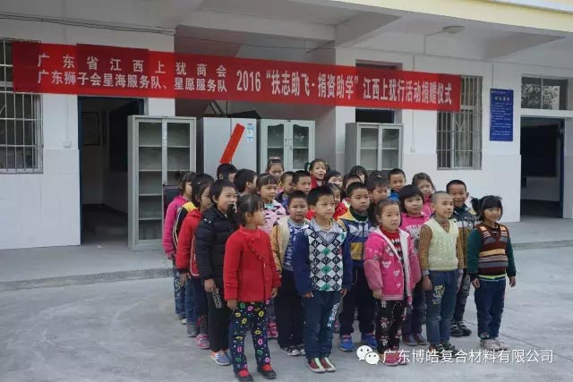 捐贈儀式上,廣東江西上猶商會會長、廣東博皓復(fù)合材料有限公司董事長賴厚平先生向陡水中心小學(xué)、平富中心校和營前鎮(zhèn)石溪小學(xué)等學(xué)校贈送了課桌、學(xué)習用品、電腦設(shè)備等教育教學(xué)物資及助學(xué)金,在講話中,賴厚平先生勉勵同學(xué)們勤奮學(xué)習、自強不息,把暫時的艱苦作為成長生活中的磨煉和精神財富的積累,把感激之情化為成才之志,發(fā)奮之源,用優(yōu)異的成績回報社會。