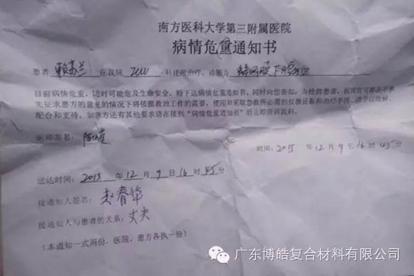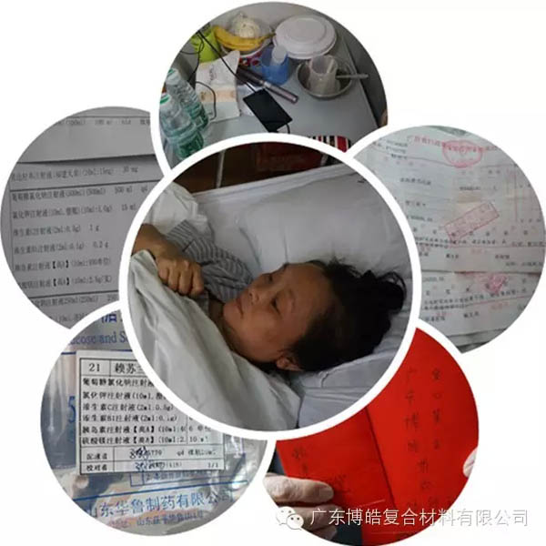 廣東博皓復(fù)合材料有限公司董事長經(jīng)熟人轉(zhuǎn)述得知此事,不僅積極號召身邊人,發(fā)動小型的微信捐資活動,還從博皓愛心基金支出5000元人民幣,為這位生病的母親加油。當(dāng)公司代表賴建明將5000元現(xiàn)金交到賴蘇蘭丈夫手中的時(shí)候,他稍稍有點(diǎn)哽咽。從當(dāng)時(shí)這位憨厚的丈夫百味交集的表情中可以看出,作為家里的頂梁柱,不管平日多么堅(jiān)強(qiáng),當(dāng)面對自己的親人被病魔纏身之時(shí),又是多么的無助??粗@位被病痛折磨之下的45歲的媽媽,你很難相信她就是那個沒日沒夜加班只為讓家人可以稍微寬裕的母親,此刻,她無力的蜷縮在被窩里,嘴唇蒼白,臉色鐵青,雙眼無力的看著一滴滴藥水順著被針扎的凸起的血管流入身體,那就是她的希望,或許她和其他母親一樣,正在思考,大女兒是否穿暖,小女兒有無吃飽……..
